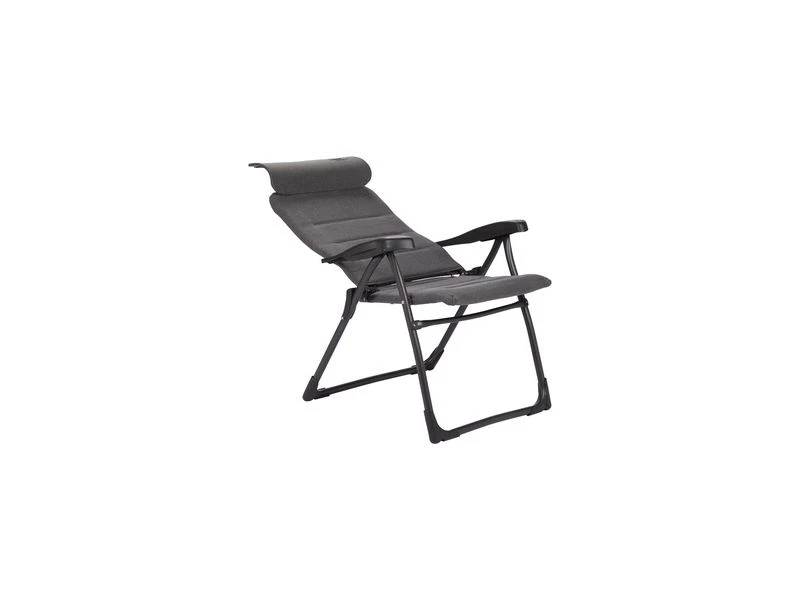 Een lichtgewicht en extra compacte standenstoel. Deze stoel biedt maximaal comfort door de in 7 standen verstelbare rugleuning en een traploos verstelbare hoofdsteun (ruglengte: 65-83 cm). De rugleuning, de zitting en de armleggers zijn ergonomisch gevormd. Deze comfortabele stof is zeer onderhoudsvriendelijk, bestand tegen verkleuring door de zon en waterafstotend door de open celstructuur. Hierdoor is de stoel veel sneller droog dan stoelen met een traditionele schuimvulling. De stoel is voorzien van een U-frame met stabilisatoren en extra dikke buizen voor extra stevigheid en stabiliteit. Deze stoel is door de inschuifbare hoofdsteun extra compact op te bergen. Tot 50% minder pakvolume in vergelijking met andere kampeerstoelen!